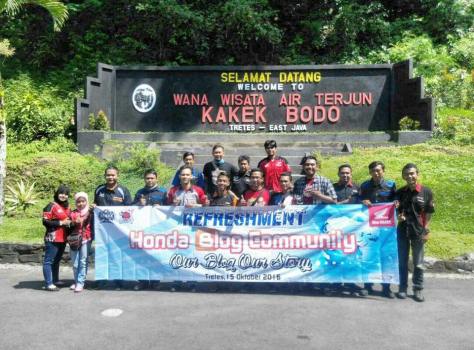 Pertemuan bersama 25 blogger dari berbagai komunitas motor Honda yang disuport oleh PT. Mitra Pinasthika Mulia (MPM) sebagai main dealer sepeda motor Honda wilayah Jatim dan NTTini berlangsung sangat seru, apalagi sebelum acara inti kami diajak untuk berwisata di Air Terjun Kakek Bodo di kawasan Tretes Pandaan, perasaan saya sungguh sangat senang meski lelah karena perjalanan menuju Air Terjun lumayan jauh dengan jalan yang naik turun, maklum saja saya mempunyai postur yang tidak ideal untuk melewati medan dengan berjalan kaki, alhasil meski jarak gak sampai 1 kilo saya mesti rest selama lebih dari 3 kali….hehehe, hal ini disebabkan badan saya yang lebih tumbuh kesamping dari pada ke atas.