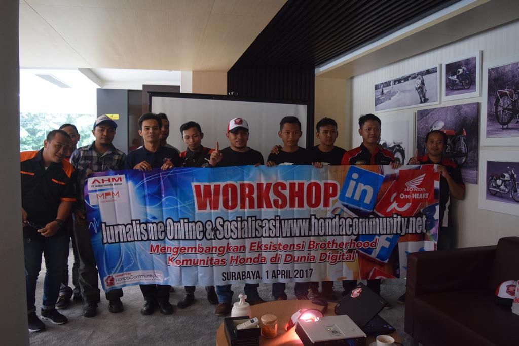 Masbro...tak bisa dipungkiri jika lahirnya berbagai komunitas motor sering menjadi sorotan negatif di mata masyarakat, meskipun sebenarnya banyak juga komunitas motor yang kegiatannya positif dan bagus dalam berkomunitas serta selalu safety riding saat berkendara, untuk itu pada hari sabtu, 1 April 2017 bertempat di Premium Lounge MPM Simpang Dukuh 42-44 Surabaya, PT. Mitra Pinasthika Mulia (MPM) sebagai Main Dealer sepeda motor Honda wilayah Jawa Timur dan NTT menggelar acara “Pelatihan Jurnalisme Online dan Sosialisasi web Hondacommunity.net” kepada komunitas motor Honda Jawa Timur.