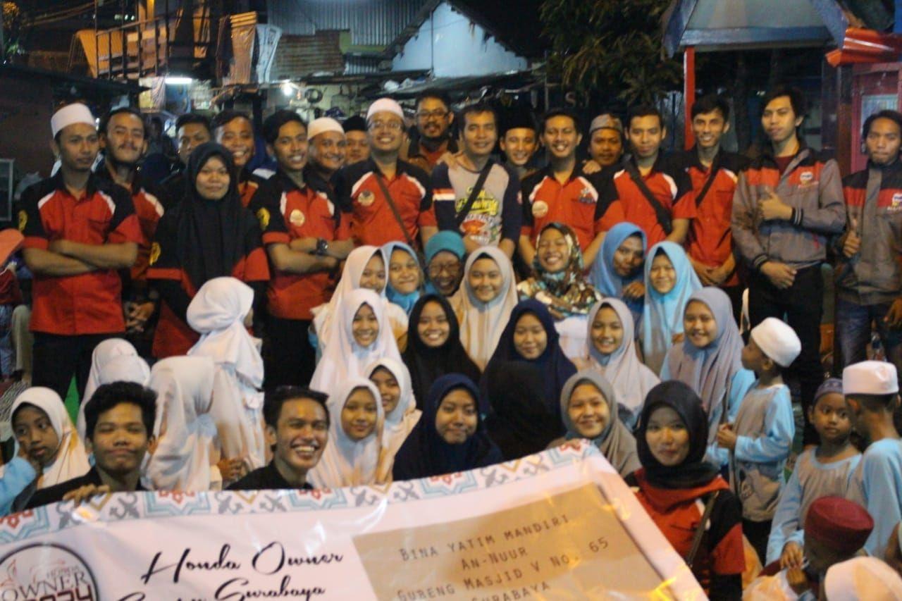 Sebanyak 75 Yatim Piatu ikut serta dalam acara yang di selenggarakan HOSS ( Honda Owner Scoopy Surabaya ).