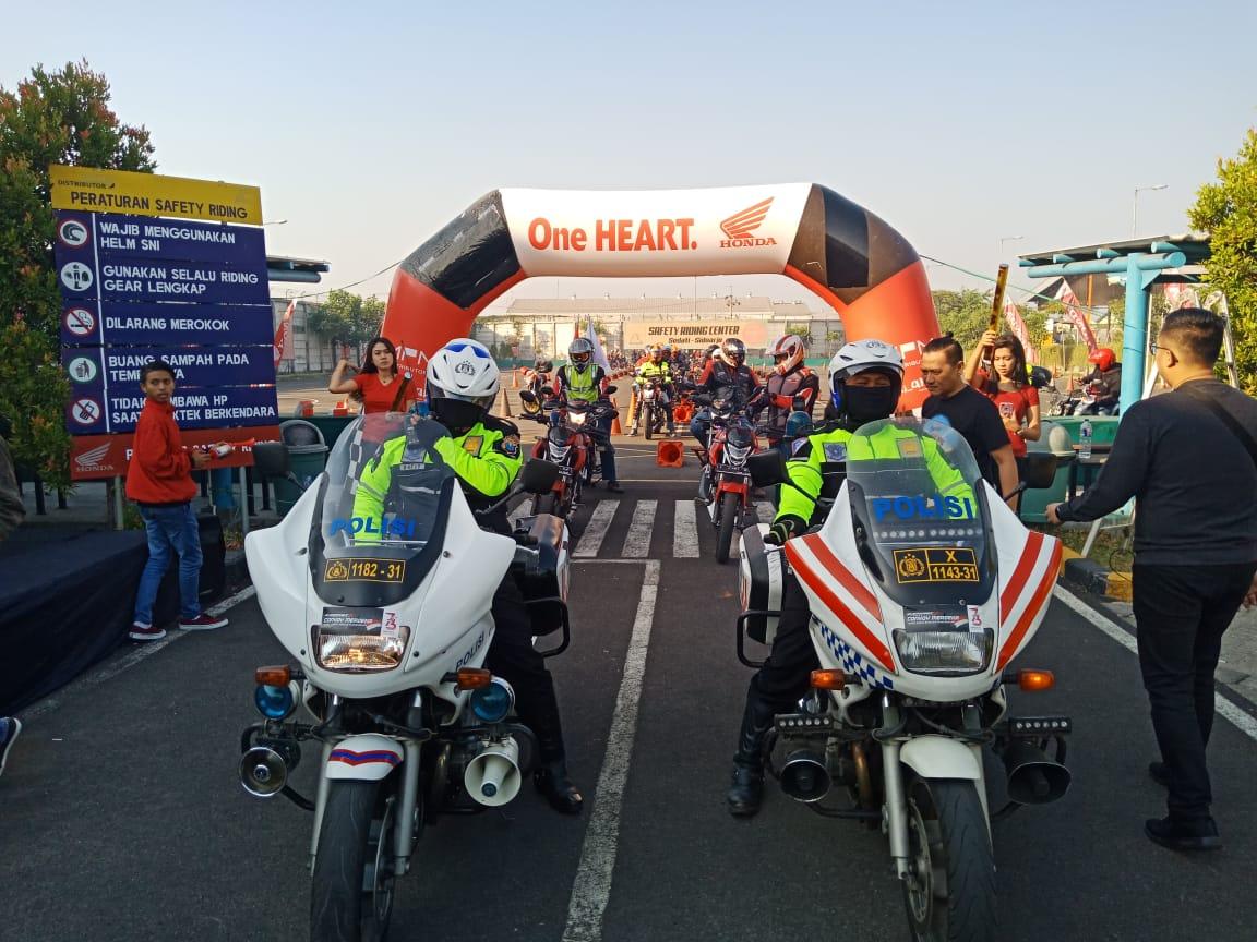Para peserta yang berasal dari komunitas Cb150r streetfire Jawa Timur berkumpul di sirkuit safety riding MPM guna melakukan registrasi serta pembekalan dari tim safety riding MPM.