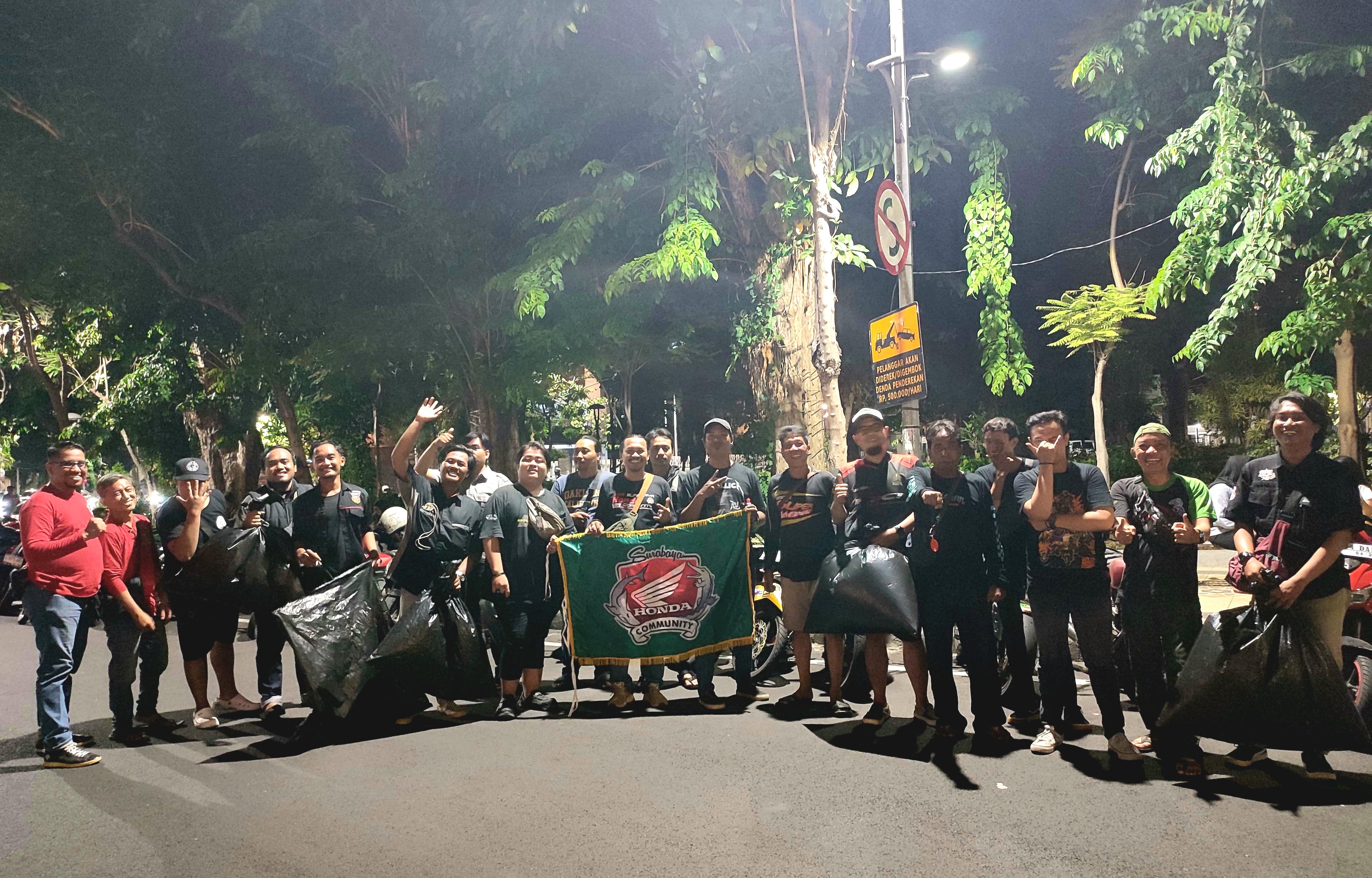 Usut punya usut ternyata para biker SHC ini berkumpul untuk melakukan kegiatan positif yaitu resik-resik lokasi kopdaran di sekitar monumen Bambu Runcing.