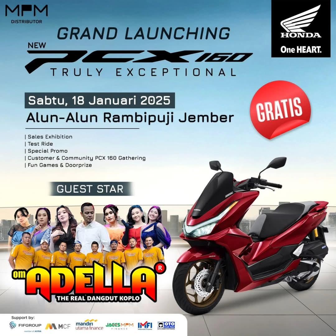 Halo warga Jember dan sekitarnya, setelah sukses digelar di Blitar dan Banyuwangi, kemeriahan Regional Public Launching New Honda PCX160 akan hadir di Jember.
