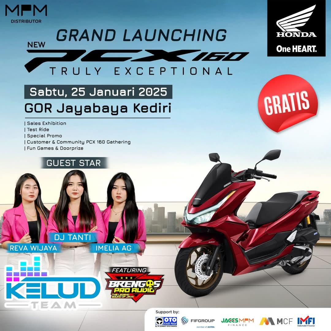 Setelah sukses di beberapa kota di JawaTimur, PT Mitra Pinasthika Mulia (MPM Honda Jatim), distributor sepeda motor Honda untuk wilayah Jawa Timur & NTT, kembali mempersembahkan kemeriahan Launching New Honda PCX160 di GOR Jayabaya Kediri.
