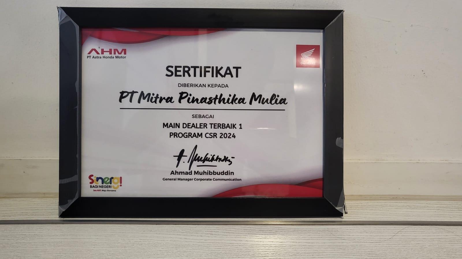 PT Mitra Pinasthika Mulia (MPM Honda Jatim) distributor sepeda motor Honda wilayah Jatim & NTT kembali menorehkan prestasi gemilang dengan meraih penghargaan sebagai perusahaan terbaik di bidang Corporate Social Responsibility (CSR) versi PT Astra Honda Motor (AHM).