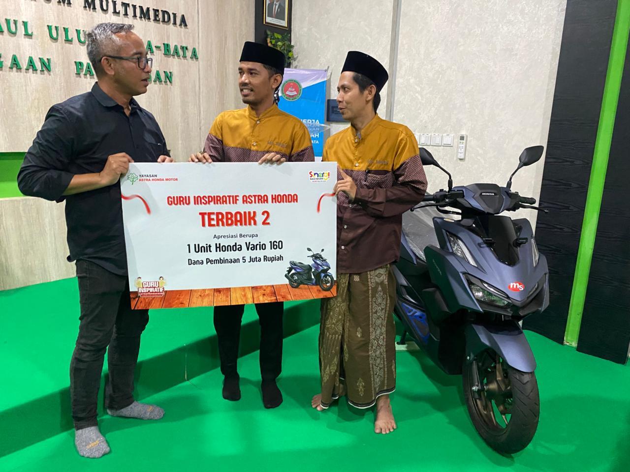 Salah satu apresiasi untuk guru inspiratif diberikan secara langsung kepada Fadolul Ghafur, S.Si dari MA Mambaul Ulum Bata-Bata, Pamekasan, Jawa Timur sebagai Terbaik 2, yang berhak menerima 1 unit Honda Vario160 dan dana pembinaan    Rp 5 juta.